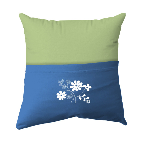 Cushion Cover - Handmade Reading Scatter Cushion / Pillow Cover - Apple Green and Blue Pocket