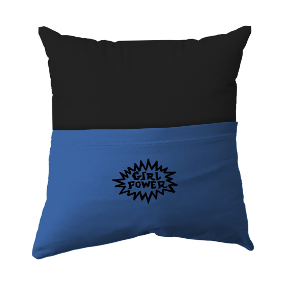 Cushion Cover - Handmade Reading Scatter Cushion / Pillow Cover - Black and Blue Pocket