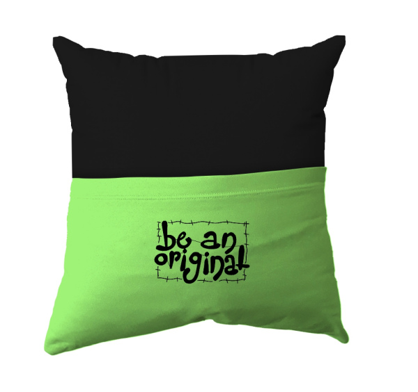 Cushion Cover - Handmade Reading Scatter Cushion / Pillow Cover - Black and Lime Pocket