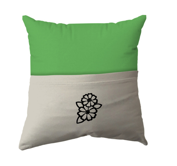 Cushion Cover - Handmade Reading Scatter Cushion / Pillow Cover - Bright Green and Light Grey Pocket