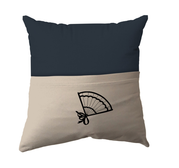 Cushion Cover - Handmade Reading Scatter Cushion / Pillow Cover - Dark Blue and Stone Brown Pocket