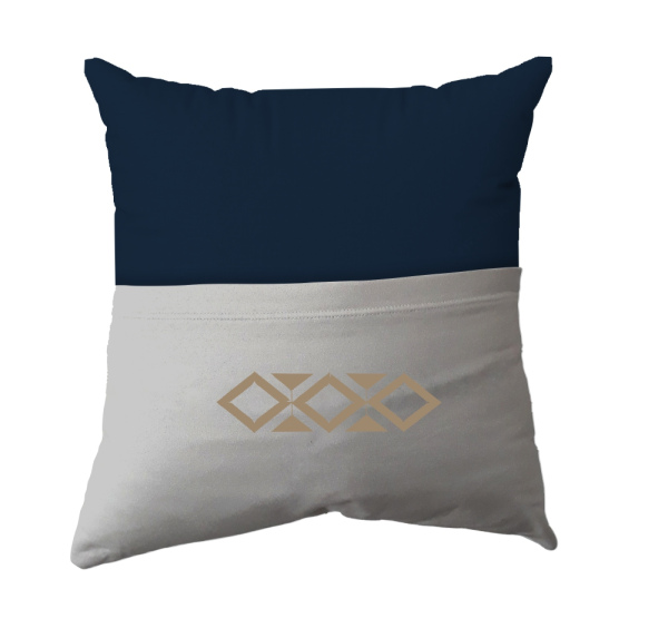 Cushion Cover - Handmade Reading Scatter Cushion / Pillow Cover - Dark Blue and White Pocket