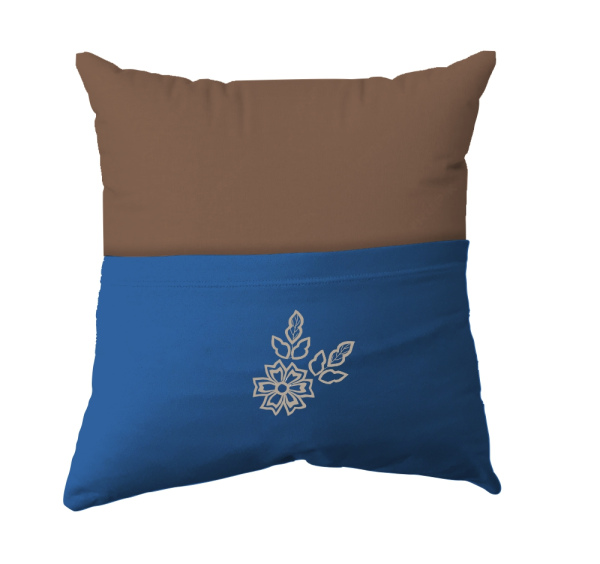Cushion Cover - Handmade Reading Scatter Cushion / Pillow Cover - Dark Khaki and Pale Blue Pocket
