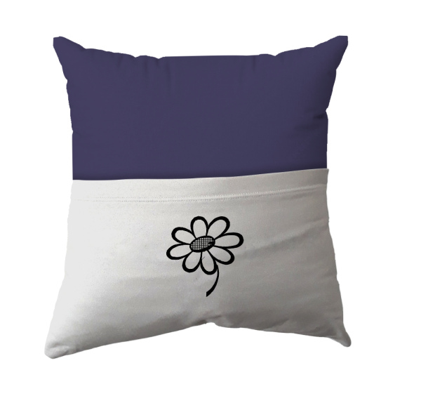 Cushion Cover - Handmade Reading Scatter Cushion / Pillow Cover - Dark Purple and White Pocket