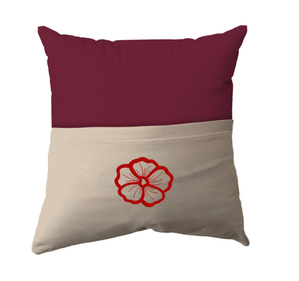 Cushion Cover - Handmade Reading Scatter Cushion / Pillow Cover - Dark Red and Stone Brown Pocket