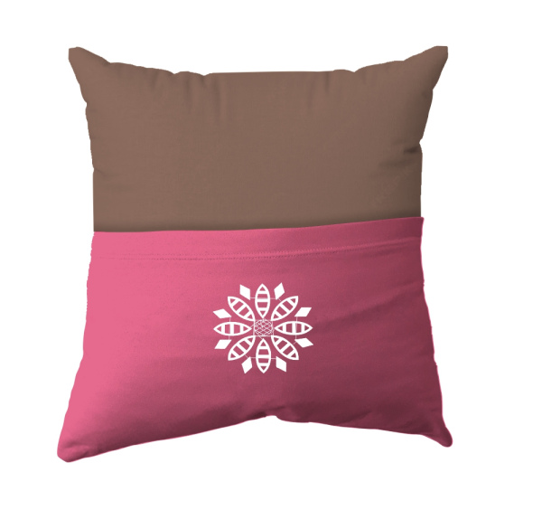Cushion Cover - Handmade Reading Scatter Cushion / Pillow Cover - Khaki Brown and Pink Pocket