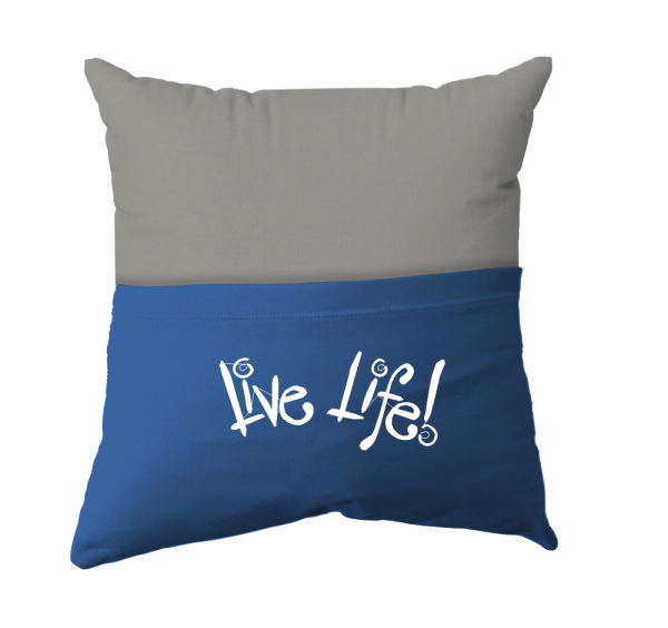 Cushion Cover - Handmade Reading Scatter Cushion / Pillow Cover - Light Grey and Turqoise Blue Pocket