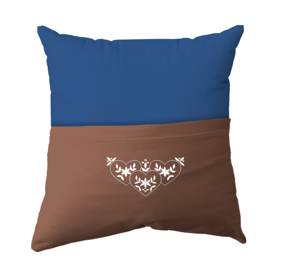 Front pocket with an embroidered design, ideal for storing a book, remote, tablet, or other small items