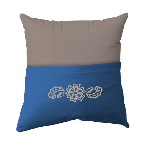 Cushion Cover - Handmade Reading Scatter Cushion / Pillow Cover - Stone Brown and Blue Pocket