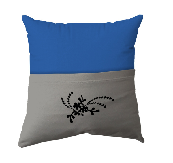 Front pocket with an embroidered design, ideal for storing a book, remote, tablet, or other small items