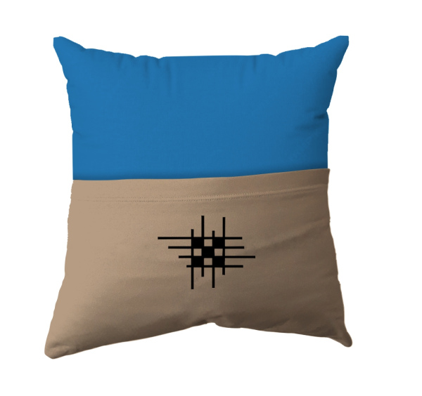 Cushion Cover - Handmade Reading Scatter Cushion / Pillow Cover - Turqoise Blue and Stone Brown Pocket