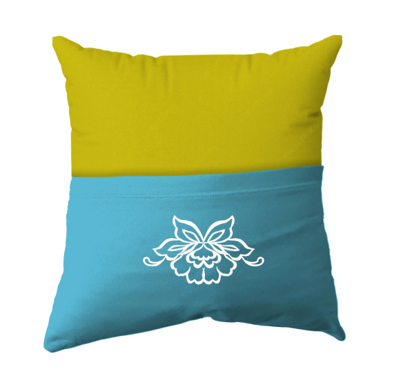 Cushion Cover - Handmade Reading Scatter Cushion / Pillow Cover - Yellow and Blue Pocket