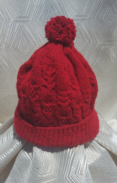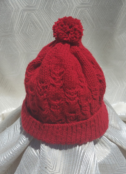 Handmade Knitted Beanie - Dark Red