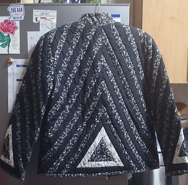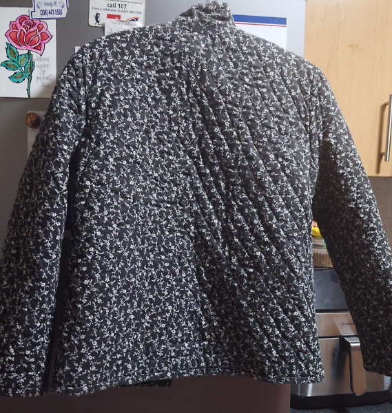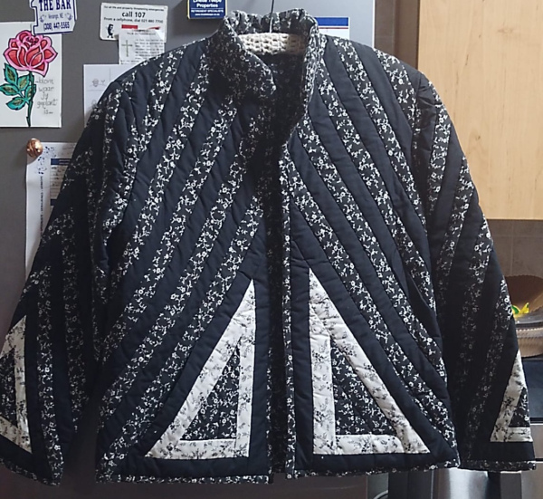 This lovingly crafted reversible quilt jacket, designed for a 14–15-year-old girl, is a perfect blend of style and warmth.
